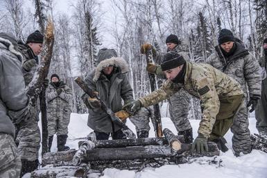 Keywords: Air Force Coast Guard members construct fire producing smoke signals
