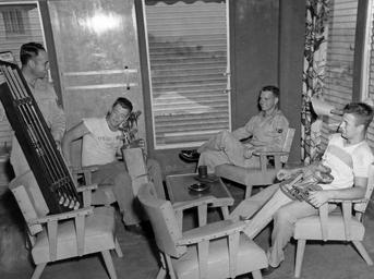 | Keywords: ramey air force base rameyairforcebase afb ramey historic photograph pr puerto rico puertorico golf golfers blackandwhite monochrome black and white Caption reads: To trade, buy, or borrow clubs and other golfing equipment gives all personnel a chance to get in the act on the greens at the Ramey Golf Course. Eighteen holes and a beautiful club house offer plenty of recreation to the personnel of Ramey Air Force Base, Puerto Rico. M/Sgt Harry Campbell, NCOIC of the golf club displays some of the new woods to (left to right) Pfc. Morris Root, Pfc. Axel Peterson, and Cpl. Charles Chester , all of the 55th Strategic Reconnaissance Wing. From the National Archives: RG342-FH Box No. 2089 Photo B42921, March 1952 Caption reads: To trade, buy, or borrow clubs and other golfing equipment gives all personnel a chance to get in the act on the greens at the Ramey Golf Course. Eighteen holes and a beautiful club house offer plenty of recreation to the personnel of Ramey Air Force Base, Puerto Rico. M/Sgt Harry Campbell, NCOIC of the golf club displays some of the new woods to (left to right) Pfc. Morris Root, Pfc. Axel Peterson, and Cpl. Charles Chester , all of the 55th Strategic Reconnaissance Wing. From the National Archives: RG342-FH Box No. 2089 Photo B42921, March 1952 |