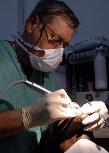 | Keywords: Air Force Lt. Col. Richard Tate, dentist, performs a tooth extraction.jpeg  en PORT-AU-PRINCE Haiti Sept 4 2007 - Air Force Lt Col Richard Tate a dentist attached to Military Sealift Command MSC hospital ship USNS Comfort T-AH 20 performs a tooth extraction on a patient at Hôpital de l Université d Etat d Haiti Comfort is on a four-month humanitarian deployment to Latin America and the Caribbean providing medical treatment to patients in a dozen countries U S Navy photo by Mass Communication Specialist 2nd Class Joan E Kretschmer RELEASED 2007-09-04 070904-N-6278K-143 Navy http //www navy mil/view_image asp id 50377 U S Navy photo by Mass Communication Specialist 2nd Class Joan E Kretschmer PD-USGov-Military-Navy Military people of the United States in Port-au-Prince 2007 in Hôpital de l'Université d'Etat d'Haïti Port-au-Prince 2007 in Port-au-Prince 0904 September 2007 in Haiti 04 |