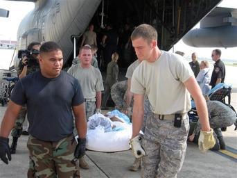 | Keywords: Air Guard Assists Thousands Displaced by Gustav DVIDS112509.jpg en Litter patients are carried from a Texas Air National Guard C-130 Hercules on Aug 31 2008 to ambulances at Lackland Air Force Base in San Antonio following their aeromedical flight from Beaumont Texas In the potential path of Hurricane Gustav's landfall a multi-state aeromedical Air Guard team from Texas Delaware West Virginia Oklahoma and Tennessee helped airlift at least 247 patients to safety 2008-09-02 Master Sgt Michael Smith https //www dvidshub net/image/112509 112509 2008-09-02 17 31 ARLINGTON VA US PD-USGov Lackland Air Force Base Lockheed C-130 Hercules 136th Airlift Wing Texas Air National Guard Images from DoD uploaded by Fæ |