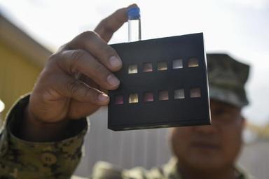 | Keywords: Air and water testing 131227-N-LE393-035.jpg en U S Navy Chief Hospital Corpsman Emeterio Donato chief of the preventative medicine team for Camp Lemonnier's expeditionary medical facility tests the pH of the drinking water on Camp Lemonnier The team conducts monthly quality control testing in conjunction with daily testing by the camp's water production plant to ensure the safety of the drinking water U S Navy photo by Mass Communication Specialist 1st Class Eric Dietrich/Released 2013-12-27 Petty Officer 1st Class Eric Dietrich https //www dvidshub net/image/1144244 131227-N-LE393-035 2013-12-27 08 09 DJ PD-USGov-Military-Navy Camp Lemonnier Images from DoD uploaded by Fæ |