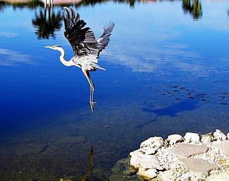 Keywords: airborne great blue heron great blue heron bird sky clouds florida lake reflection reflections nature scenic launch