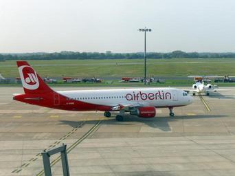 | Keywords: Airbus A320 Air Berlin D-ABNE.jpg en Airbus A320 with registration D-ABNE has been pushed back from the terminal of Bremen's airport for a flight to Mallorca own Tvabutzku1234 2014-09-28 53 3 7 26 N 8 47 8 37 E heading WSW Airbus A320 Air Berlin Airbus A320 at Bremen Airport Cc-zero |