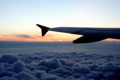 Keywords: aircraft aircraft wing clouds sunset sky sun fly evening sky afterglow selva marine