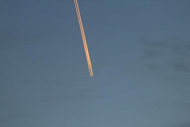 Keywords: aircraft contrail sky fly evening sky afterglow fire tail