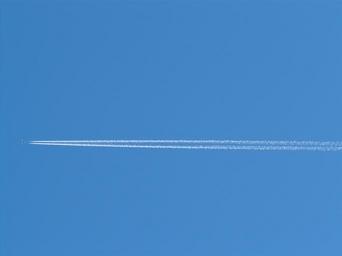 Keywords: aircraft contrail stripes sky blue fly travel holiday jet propulsion jet