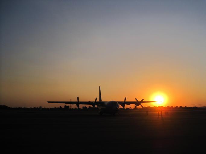 Keywords: aircraft flight line c-130 transport sunset twilight