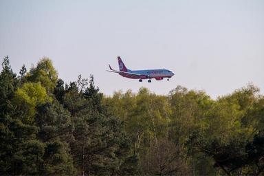 Keywords: aircraft fly land landing sky flyer wing flight blue turbine aviation passenger aircraft red air berlin go away holiday machine airliner travel tourism air traffic forest