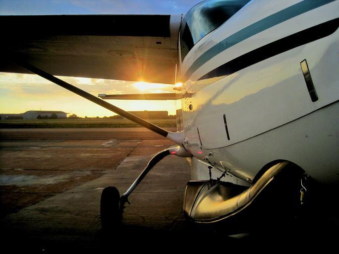 Keywords: aircraft landing strip airfield sunset sun setting tarmac glow orange