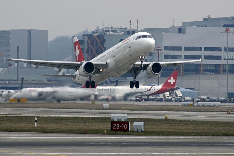 Keywords: aircraft start airport fly aviation brake airline swiss flyer passenger aircraft air traffic travel transport drive holidays