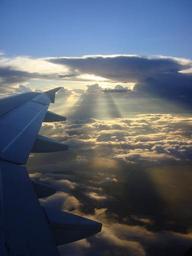 Keywords: aircraft sunrise clouds sunbeam