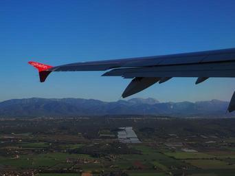 Keywords: aircraft wing aircraft wing fly return journey farewell holiday travel destination outlook mallorca mountains serra de tramuntana mountain range tramuntana