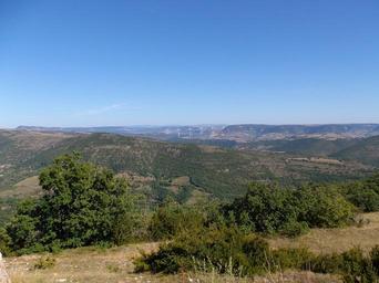 Keywords: aire de montjaux landscape viaduc de millau view valley france hills distant