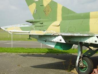 Keywords: Airforce Museum Berlin-Gatow 275.JPG Luftwaffenmuseum der Bundeswehr; Airforce Museum of the Bundeswehr; Berlin-Gatow MiG-21M Own 2007-08 RosarioVanTulpe Mikoyan-Gurevich MiG-21 at the Luftwaffenmuseum Berlin-Gatow Aircraft tails