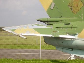 Keywords: Airforce Museum Berlin-Gatow 276.JPG Luftwaffenmuseum der Bundeswehr; Airforce Museum of the Bundeswehr; Berlin-Gatow MiG-21M Own 2007-08 RosarioVanTulpe Mikoyan-Gurevich MiG-21 at the Luftwaffenmuseum Berlin-Gatow Aircraft tails