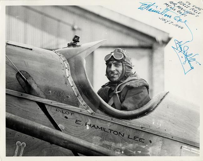 | Keywords: smithsonian institution smithsonianinstitution de havilland dehavilland airmail usps de havilland dh.4b dehavillanddh4b dh.4 dh4 dh.4b dh4b aviation aircraft airplane united airlines flyingest unitedairlinesflyingest man world helped establish world's first schdculed air transport system helpedestablishworldsfirstschdculedairtransportsystem aviator e. hamilton lee ehamiltonlee hamilton lee hamiltonlee lee national postal museum nationalpostalmuseum mail across the commons mailacrossthecommons Description: E. Hamilton Lee autographed this photograph of himself in his de Havilland mail airplane. He playfully signed the photograph "to the verst first air mail supt my old boss" on July 7, 1949. The photograph was given to Benjamin Lipsner, the first superintendent of the US Airmail Service. Lee flew off and on for the Post Office Department for most of its 1918-1927 run. After his airmail service ended, Lee flew for United Airlines, retiring from the company in 1949. At the time of his retirement, he had flown longer and farther than any other pilot alive. Creator/Photographer: Unidentified photographer Medium: Black and white photographic print Culture: American Geography: USA Collection: Benjamin Lipsner Collection Repository: National Postal Museum Gift line: Gift of Benjamin Lipsner Accession number: A.2008-3 Persistent URL: arago.si.edu/index.asp?con=2&cmd=1&id=194355 View more collections from the Smithsonian Institution. Description: E. Hamilton Lee autographed this photograph of himself in his de Havilland mail airplane. He playfully signed the photograph "to the verst first air mail supt my old boss" on July 7, 1949. The photograph was given to Benjamin Lipsner, the first superintendent of the US Airmail Service. Lee flew off and on for the Post Office Department for most of its 1918-1927 run. After his airmail service ended, Lee flew for United Airlines, retiring from the company in 1949. At the time of his retirement, he had flown longer and farther than any other pilot alive. Creator/Photographer: Unidentified photographer Medium: Black and white photographic print Culture: American Geography: USA Collection: Benjamin Lipsner Collection Repository: National Postal Museum Gift line: Gift of Benjamin Lipsner Accession number: A.2008-3 Persistent URL: arago.si.edu/index.asp?con=2&cmd=1&id=194355 View more collections from the Smithsonian Institution. |