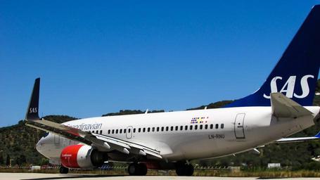 Keywords: airplane airport scandinavian airlines aircraft travel transportation jet departure vacation tourism summer greece skiathos