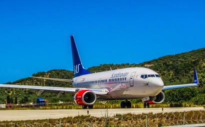 Keywords: airplane airport scandinavian airlines aircraft travel transportation jet departure vacation tourism summer greece skiathos