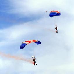 Keywords: airplane aviation blue celebration chute cloud demonstration descend dive drop event extreme fall falling flight fly flying freefall glide glider gliding hang jump landing man military para parachute parachutist paraglide paraglider paragliding paratrooper red risk sail skill sky skydive skydiving smoke soar sport team training white