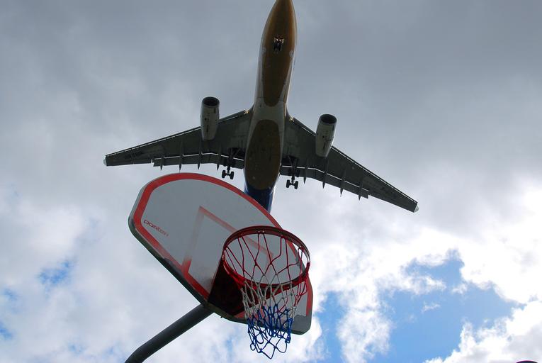 Keywords: airplane plane basketball basketball hoop sky landing flying aviation jet
