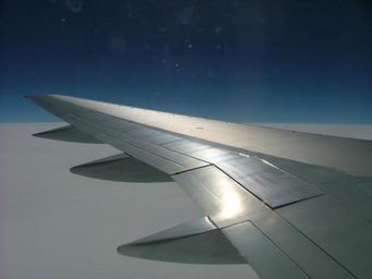 Keywords: airplane wing blue sky