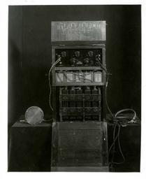 | Keywords: AirplaneDetectionAppt 002.jpg Operation top 1 Connect condenser detector to input ; 2 Connect telephone to output ; 3 Decrease grid leaks to minimum resistance ; 4 Set filament controls at OFF position ; 5 Turn on A Battery by pulling out snap switch ; 6 Increase filament current of last tube to almost full value ; 7 Set filament control knobs of other tubes to index marks Never turn past these marks ; 8 Increase grid leak resistance until maximum amplification is obtained ; 9 No further attention is required National Institute of Standards and Technology 08/06/1926 National Institute of Standards and Technology The images in the Airplane Detection Apparatus Photographic Collection are in the public domain and are not subject to copyright in the United States However please pay special attention to the individual works to make sure there are no copyright restrictions indicated Individual works may require securing other permissions from the original copyright holder Use of the images from NIST Digital Collections is not restricted but a statement of attribution is required Please use the following attribution statement National Institute of Standards and Technology Digital Collections Gaithersburg MD 20899 PD-USGov National Bureau of Standards National Institute of Standards and Technology Aeronautical measurement |