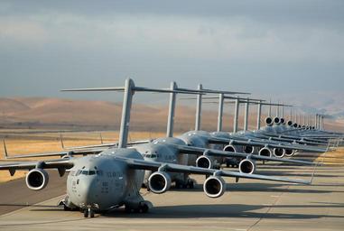 Keywords: airplanes lined up takeoff cargo military planes runway aviation fly transport