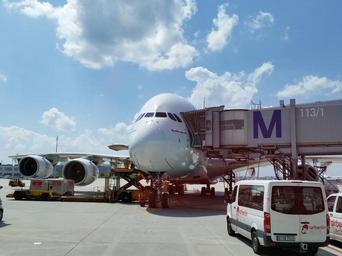 Keywords: airport aircraft aviation passenger aircraft gangway fly airline airbus a 380 emirates entry travel plane gangway access bridge flyer air traffic airliner