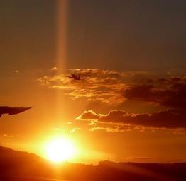 Keywords: airport aircraft sunset yellow orange cloud clouds summer sunny take off dark