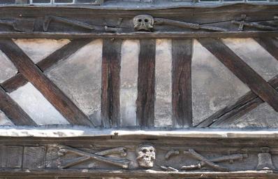 | Keywords: Aître Saint-Maclou Rouen 2009 4.jpg L'école régionale des Beaux-Arts de Rouen est située dans un ancien charnier aître Saint-Maclou own photo 2009-08-15 Man vyi Own work all rights released Public domain Aître Saint-Maclou Skull and crossbones Bones in art Human skulls in art Sculptures of tools |