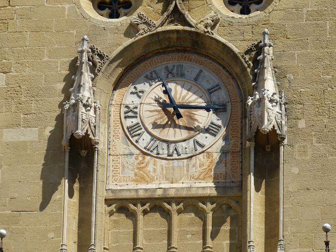 Keywords: aix france south of france aix-en-provence provence town hall tower architecture historically clock time time indicating time of clock face pointer