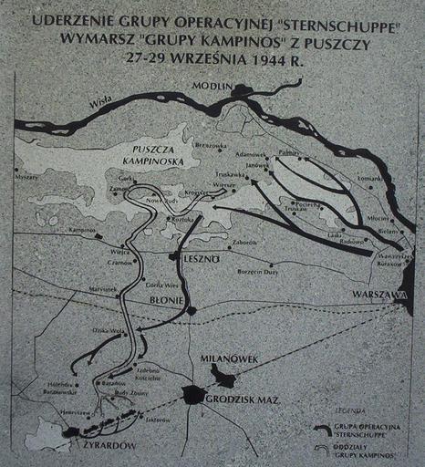 | Keywords: Ak grupa kampinos mapa01.jpg Map with moves of Group Kampinos 27-29 09 1944 on a cemetery of Home Army soldiers from Group Kampinos in Budy Zosiny While group were trying to reach Świętokrzyskie Mountains it got sorrounded 29 September 1944 on a terrain of village Budy Zosiny Mapa z działaniami Grupy Kampinos w dniach 27-29 09 1944 na cmentarzu żołnierzy AK z Grupy Kampinos we wsi Budy Zosiny Przebijająca się w Góry Świętokrzyskie Grupa Kampinos została na terenie wsi Budy Zosiny otoczona i rozbita 29 września 1944 2005-07-02 own Meteor2017 Cemetery of Home Army soldiers from Group Kampinos Warsaw Uprising plaques Kampinos Group |
