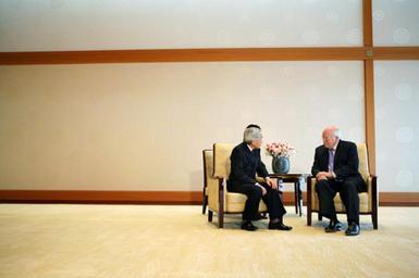| Keywords: Akihito and Dick Cheney 20070221.jpg en Emperor Akihito conferred with Vice President Dick Cheney at the Imperial Palace in Chiyoda Ward Tōkyō Metropolis on February 21 2007 http //www whitehouse gov/news/releases/2007/02/images/20070221-4_v022107db-0061-515h html Vice President Dick Cheney talks with Japan's Emperor Akihito during a visit Wednesday Feb 21 2007 to the Imperial Palace in Tokyo White House photo by David Bohrer White House photo by David Bohrer 2007-02-21 PD-USGov Emperor Akihito in 2007 Dick Cheney in 2007 20070221 Interior of Tokyo Imperial Palace Photographs by David Bohrer |