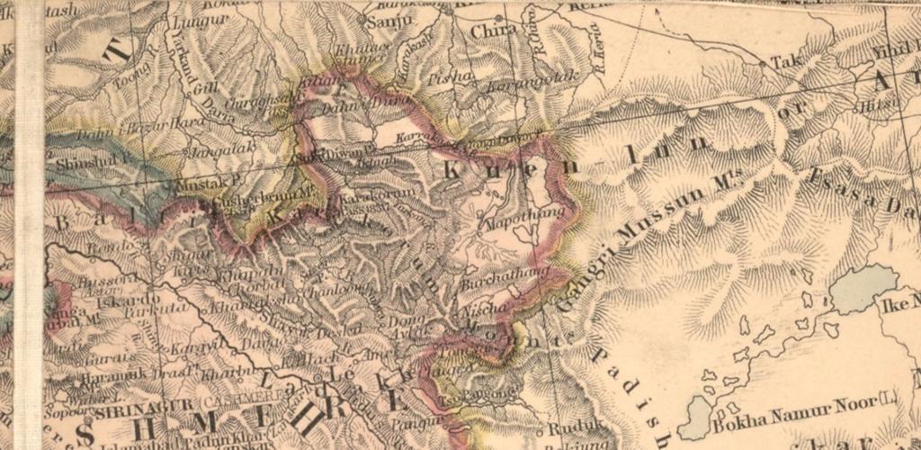 | Keywords: Aksai Chin and the valley of the Karakash in Ladakh, eastern Kashmir comprising the area from the eastern Pang gong lake in Ladakh in the bottom to the Kilian, Sanju-la and Hindutash Passes in Ladakh in the Kue.png en Extract from map titled the A Map of the Countries between Constantinople and Calcutta including Turkey in Asia Persia Afghanistan and Turkestan 1 7 000 000 published in 1885 by Edward Stanford Ltd a London map seller and publishing house established in 1853 by Edward Stanford 1827 “1904 Stanford's Geographical Establishment London known for its London shop catering to famous explorers and political figures portraying the area comprising the valley of the Karakash in the Aksai Chin in Ladakh in eastern Kashmir comprising the area from the eastern Pangong Tso in Ladakh in the bottom of the map to the Kilian Sanju-la Hindutash and Yangi Passes in Ladakh in the Kuen Lun range in northern Ladakh up to the Khathaitum in the Kilian Valley in northern Ladakh 1885 Extract from map titled the A Map of the Countries between Constantinople and Calcutta including Turkey in Asia Persia Afghanistan and Turkestan 1 7 000 000 published in 1885 by Edward Stanford Ltd a London map seller and publishing house established in 1853 by Edward Stanford 1827 “1904 Stanford's Geographical Establishment London Edward Stanford Ltd established in 1853 by Edward Stanford 1827 “1904 Stanford's Geographical Establishment London other versions PD-Art PD-old-100 Old maps of Kashmir Geography of Ladakh History of Ladakh Maps of Ladakh |