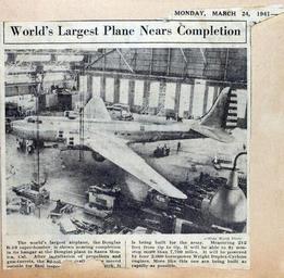 | Keywords: aviation aircraft airplane military aviation militaryaviation bomber prototype 38-471 38471 douglas aircraft company douglasaircraftcompany dac douglas aircraft douglasaircraft douglas douglas xb-19 douglasxb19 xb-19 xb19 douglas b-19 douglasb19 b-19 b19 wright aeronautical wrightaeronautical wright wright r-3350 wrightr3350 r-3350 r3350 From an Album (AL-74) donated Mr. Parsons which includes aviation related clippings from newspapers. Repository: San Diego Air and Space Museum Archive From an Album (AL-74) donated Mr. Parsons which includes aviation related clippings from newspapers. Repository: San Diego Air and Space Museum Archive |