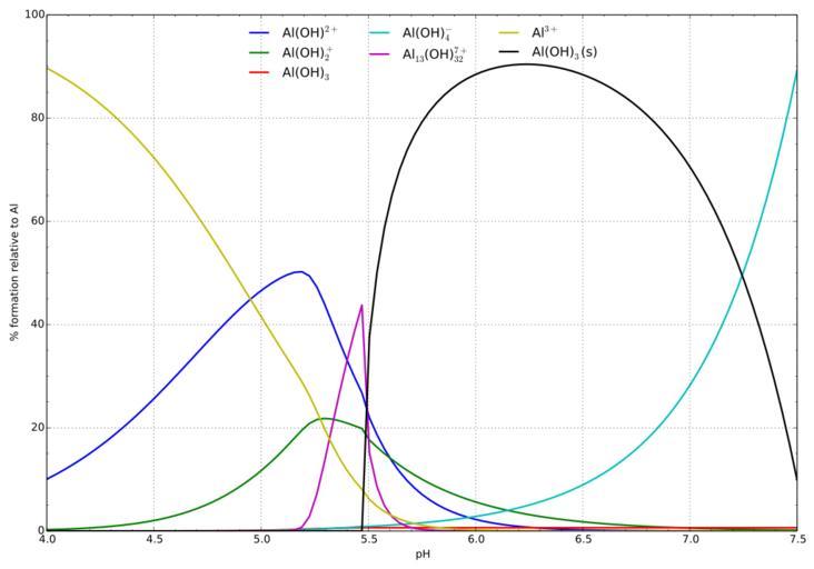 Keywords: Al hydrolysis.svg python script given below 2014-07-30 13 35 59 own Krishnavedala validSVG Python source code <syntaxhighlight lang python > import numpy as np from matplotlib pyplot import figure X np loadtxt data txt skiprows 16 fig figure figsize 15 10 ax fig add_subplot 111 ph X 4 Al X1 1 Al1 X 5 100 / Al Al2 X 6 100 / Al Al3 X 7 100 / Al Al4 X 8 100 / Al Al5 X 10 13 100 / Al Al6 X 3 100 / Al Al7 X 12 100 / Al ax plot ph Al1 linewidth 2 label r Al OH 2+ ax plot ph Al2 linewidth 2 label r Al OH _2 + ax plot ph Al3 linewidth 2 label r Al OH _3 ax plot ph Al4 linewidth 2 label r Al OH _4 - ax plot ph Al5 linewidth 2 label r Al _ 13 OH _ 32 7+ ax plot ph Al6 linewidth 2 label r Al 3+ ax plot ph Al7 linewidth 2 label r Al OH _3 s ax set_ylim 0 100 ax grid True ax legend frameon False ncol 3 loc 9 ax minorticks_on ax set_ylabel formation relative to Al ax set_xlabel pH fig show fig savefig Al hydrolysis svg bbox_inches tight pad_inches 15 </syntaxhighlight> cob cc-zero Uploaded with UploadWizard Speciation diagrams Created with Matplotlib Hydrolysis |