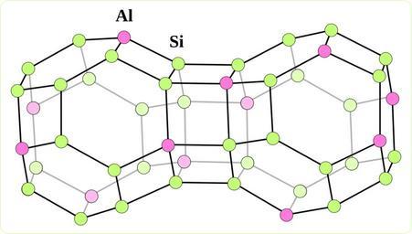Keywords: Al-Si-distribution faujasite.svg en Distribution of Al and Si atoms in a zeolite Y structure 2013-01-31 21 47 40 own Hermann Luyken cc-zero Uploaded with UploadWizard Zeolite Y