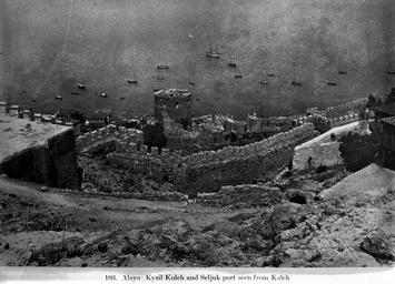 | Keywords: kızılkule red tower redtower alanya kalesi alanyakalesi alanya castle alanyacastle selçuklu selçuklular seljuks alaeddin keykubat alaeddinkeykubat sekizgen octagonal kale castle tuğla brick mimari architecture alanya antalya salt araştırma saltaraştırma salt research saltresearch salt online saltonline blackandwhite monochrome outdoor black and white www.archives.saltresearch.org/R/-?func=dbin-jump-full&amp... Alanya’da bulunan Kızıl Kule, Anadolu Selçuklu Sultanı I. Alâeddin Keykubad tarafından 1226’da, bölgenin güvenliğini korumak amacıyla yaptırıldı. Kuledeki kitabelerden birinde yapının mimarı, Halepli Ebu Reha oğlu Ebu Ali olarak belirtilir. Alanya Kalesi’nin odak noktası olan yapı sekizgen planlıdır; çapı 29 metre ve yüksekliği (doğu tarafından) 33 metredir. 1951-1953 yıllarında kapsamlı bir onarımdan geçirilen kule, 1979’da Etnografya Müzesi olarak ziyarete açıldı, 2009’da ise Kültür ve Turizm Bakanlığı tarafından Alanya Belediyesi’ne tahsis edildi. Alanya Kalesi ve Kızıl Kule’nin havadan görünümü SALT Araştırma, Ali Saim Ülgen Arşivi www.archives.saltresearch.org/R/-?func=dbin-jump-full&amp... Alanya’da bulunan Kızıl Kule, Anadolu Selçuklu Sultanı I. Alâeddin Keykubad tarafından 1226’da, bölgenin güvenliğini korumak amacıyla yaptırıldı. Kuledeki kitabelerden birinde yapının mimarı, Halepli Ebu Reha oğlu Ebu Ali olarak belirtilir. Alanya Kalesi’nin odak noktası olan yapı sekizgen planlıdır; çapı 29 metre ve yüksekliği (doğu tarafından) 33 metredir. 1951-1953 yıllarında kapsamlı bir onarımdan geçirilen kule, 1979’da Etnografya Müzesi olarak ziyarete açıldı, 2009’da ise Kültür ve Turizm Bakanlığı tarafından Alanya Belediyesi’ne tahsis edildi. Alanya Kalesi ve Kızıl Kule’nin havadan görünümü SALT Araştırma, Ali Saim Ülgen Arşivi |