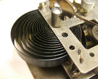 | Keywords: Alarm clock mainspring.JPG en Mainspring in the movement of a cheap 1950s alarm clock the Lux Apollo Shown in an unwound state The outer end of the spring is attached to the post at bottom Turning the key at top normally projecting from the back of the clock turns the arbor winding the mainspring more tightly around it Then the force of the mainspring turns the arbor in the other direction turning the clock's gears <br /> WARNING - Never disassemble a clock or watch with a mainspring without the proper tools and techniques The mainspring contains a lot of energy and can release suddenly causing serious injury 2008-01-17 own Chetvorno cc-zero Uploaded with UploadWizard Alarm clocks Mainspring |