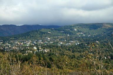 MAKE A MEME View Large Image alaska anchorage forest trees nature tree leaves autumn sky clouds fall foliage america landscape houses house cloudy mountains field homes