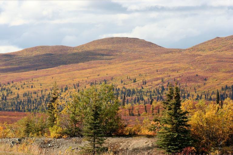 Keywords: alaska landscape nature mountain mountains grass tundra wilderness forest clouds autumn fall trees hills rural countryside woods fall color usa