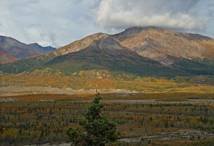 Keywords: alaska tundra wilderness mountain forest trees landscape sky clouds fall color rural nature scenery