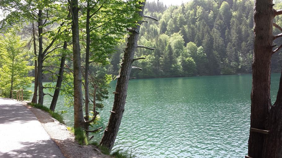 Keywords: alatsee allgäu idyll water still summer mountains nice weather scenic alpine more bergsee füssen tree nature idyllic