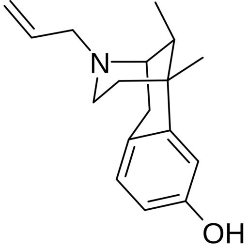 Keywords: Alazocine.svg Chemical structure of alazocine Own 13 26 3 May 2016 UTC Ed Edgar181 Benzomorphans Phenols Allylamines