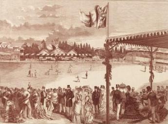 | Keywords: Albert Ground Sydney.jpg en Intercolonial Cricket Match between Victoria and New South Wales held at the Albert Cricket Ground Sydney December 1876 lithograph wood engraving; sheet 51 x 68 cm http //nla gov au/nla pic-an9599587 author 1876 PD-Australia Cricket matches in Australia Cricket grounds in New South Wales |