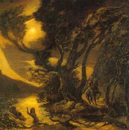 | Keywords: Albert Pinkham Ryder - Siegfried and the Rhine Maidens (contrast).jpg between 1888 1891 Oil on canvas cm 50 5 52 National Gallery of Art Andrew W Mellon Collection object history credit line Published in the following cite journal 1908 September Albert Ryder's Mystic Art Current Literature 45 3 293 289 293 New York United States The Current Literature Publishing Company Wheeler Edward J 2011-06-23 http //books google com sg/books id WTUiAQAAIAAJ pg PA293 cite book 1918-03 Loan Exhibition of the Works of Albert P Ryder Metropolitan Museum of Art New York United States Plate 39 http //books google com sg/books id JAM3AQAAIAAJ pg PA39 2011-06-23 accession number File Albert Pinkham Ryder - Siegfried and the Rhine Maidens jpg <gallery> File Albert Pinkham Ryder 004 jpg From the Yorck Project </gallery> Contrast adjusted Jappalang PD-old-auto-1923 1917 DEFAULTSORT Ryder Albert Pinkham; Siegfried and the Rhine Maidens 1888; National Gallery of Art Paintings by Albert Pinkham Ryder American paintings in the National Gallery of Art Götterdämmerung Siegfried Rhinemaidens 1888 oil on canvas paintings in the United States 1889 oil on canvas paintings in the United States 1890 oil on canvas paintings in the United States 1891 oil on canvas paintings in the United States Night in paintings Streams in art |