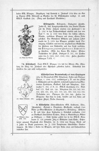 Keywords: Alberti Wappenbuch H03 S 0158.jpg S_0157 S_0159 Eisengrein von Eisenhart Eisenhut von Braunsbach von Enningen von Eisesheim Coats of arms of Eisenburg family