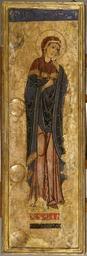 | Keywords: Alberto Sotio - The Mourning Virgin Mary - Walters 371155.jpg Walters Art Museum artwork Creator Alberto Sotio This beautiful panel one of the oldest Italian paintings in America is a fragment from the left side or apron of a large painted crucifix With one hand touching her cheek in a tender expression of sorrow the Virgin points to her left towards to the now-missing central panel with her other hand Her gesture was originally directed towards Christ's wound the source of her grief The rippling drapery and elegant contours of the Virgin's body are derived from Byzantine icons Created before painting on wooden panels was widely practiced this is a rare example of an early Italian painting executed on parchment prepared animal skin generally used for manuscripts applied to a wooden panel This fact together with the artist's remarkable control of line and expressive gesture suggest that he also worked as a manuscript illuminator For more information on this piece please see Zeri catalogue number 1 pp 3-4 ca 1180 1190 Medieval tempera paint gold on parchment mounted on wood panel cm 89 29 5 8 ; Painted surface cm 84 5 24 5 ; Original panel max cm 85 8 26 4 3 accession number 37 1155 28077 Don Marcello Massarenti Collection Rome prior to 1897 1881 catalogue no 5 1897 catalogue no 12 as Margaritone d'Arezzo Henry Walters city Baltimore Walters Art Museum 1931 by bequest Acquired by Henry Walters with the Massarenti Collection 1902 Transcription SANCTA M; Transcription Inscribed on the rectangular strip near the Virgin's feet SCA MARIA An Exhibition of the Treasures of The Walters Art Gallery The Walters Art Museum Baltimore; Pace Wildenstein Gallery New York; Smith College Museum of Art Northampton 1967 place of origin Spoleto Italy Walters Art Museum license 2D Medieval art in the Walters Art Museum Alberto Sotio Life of Mary in icons 12th-century paintings of Virgin Mary Paintings from Italy in the United States Paintings of Lamentation of Christ Spoleto Paintings in the Walters Art Museum |