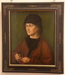 | Keywords: Albrecht Duerer Portrait des Vaters Uffizien Florenz-01.jpg Art photo Q18683052 Creator Albrecht Dürer de nach links gewandtes Brustbildnis von Dürers Vater Albrecht Dürer d Ä vor grünem Hintergrund mit braunem Mantel schwarzer Mütze und einem Rosenkranz in den Händen; auf der Rückseite Allianzwappen von Albrecht Dürer d Ä und seiner Ehefrau Barbara Holger zwischen dem Wappen und der Jahrzahl 1490 ist schwach die mit den Inventaren der Sammlung des Willibald Imhoff 1573 1580 und 1588 übereinstimmende Zahl ž19 zu erkennen oil panel cm 39 5 47 5 Institution Uffizi This portrait of the artist's father was most likely part of a diptych with the portrait of his mother Barbara Holper since the coat of arms of both families are present on the back accession number 1086 1086 <br>http //duererforschung gnm de/index php id 425 img_id 4169 pic_id 44942 Dürerforschung Germanisches Nationalmuseum<br> kQFrQSKdWWHI6Q <br>http //www wga hu/frames-e html /html/d/durer/1/01/02father html Web Gallery of Art object history Aus dem Besitz Albrecht Dürers an seinen Bruder Endres Dürer übergegangen<br>über die Witwe des Bruders in die Sammlung Willibald Imhoff gelangt; 1573 im Kunst- und 1580 im Nachlassinventar desselben verzeichnet<br>zwischen 1588 und 1628 vom Mutterbildnis Ausst Kat Frühe Dürer 2012 Kat 7 getrennt<br>1588 Kaiser Rudolf II zum Kauf angeboten und vermutlich von diesem erworben<br>Filippo Baldinucci sieht das Porträt 1675 in den Räumlichkeiten des verstorbenen Kardinals Leopoldo de ™ Medic<br>1675 Galleria degli Uffizi<br>1677 Villa medicea di Poggio Imperiale<br><br>1773 Galleria degli Uffizi credit line exhibition history 1928 Albrecht Dürer Ausstellung Nürnberg <br> 1971 Albrecht Dürer Ausstellung Nürnberg <br> 2003 Albrecht Dürer Vienna <br> 2007 Albrecht Dürer e l'Italia Florence - Rome 2010 - 2011 Van Eyck to Dürer Bruges 2012 Der frühe Dürer Nürnberg 1890 / AD ~ upper left date / monogram artwork license PD-old-100-1923 own photo date 2014-08-29 Rufus46 photo license cc-by-sa 3 0 other versions <gallery> Albrecht Dürer 072 jpg Pendant portrait of his wife Barbara Holper Albrecht Dürer - Ritratto del padre - Google Art Project jpg </gallery> DEFAULTSORT Durer; portrait male; father; Uffizi Portrait of the father Dürer Florence 07 Photographs by User Rufus46 |