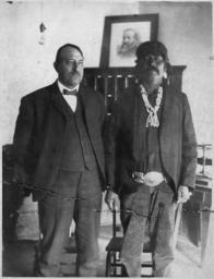 | Keywords: Alburquerqe Indian School official meeting with tribal leader. - NARA - 292888.tif Scope and content This is one of a small collection of photographs of the Albuquerque Indian School which was established in 1881 to provide off-reservation industrial training to the Indians of the Southwest By 1912 the school had 8 primary grades and over 300 students; by 1925 enrollment increased to over 800 students and grades 11 and 12 were added The Albuquerque Indian School contined operating until 1982 when its program was transferred to the Santa Fe Indian School General notes 292888 Local identifier Department of the Interior Bureau of Indian Affairs Albuquerque Indian School 1947 - ca 1964 NARA's Rocky Mountain Region Denver NRGA Building 48 Denver Federal Center West 6th Avenue and Kipling Street Denver CO 80225-0307 other date ~ 1890 Record group Record Group 75 Records of the Bureau of Indian Affairs 1793 - 1999 Record group ARC 404 General Correspondence File of the Albuquerque Indian School compiled 1881 - 1936 Series ARC 292863 File unit File unit ARC Variant control numbers NAIL Control Number NRG-75-AISP-25 yes Other versions NARA-cooperation PD-USGov 1890 events Albuquerque Indian School Pueblo people Portraits of standing men New Mexico in the 1890s |